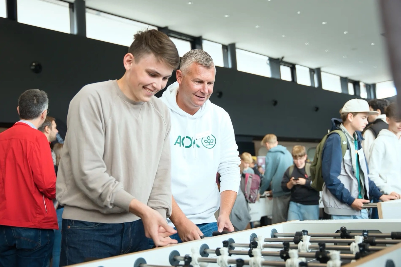 Ravensburg – Am 25. September 2024 fand in Ravensburg bei Mercedes-Benz eine spannende „Karriere-Messe“ statt, die den Schülern der Klassen 9a und 9b sowie den Schülern der AKH und AKR die Möglichkeit bot, sich über verschiedene Berufsfelder zu informieren. Organisiert wurde das Event mit dem Ziel, jungen Menschen frühzeitig Perspektiven für ihre berufliche Zukunft aufzuzeigen. Die Schüler nutzten die Gelegenheit, um mit den ausstellenden Firmen ins Gespräch zu kommen und sich über Ausbildungsmöglichkeiten, Praktika und Karrierewege zu erkundigen. Besonders beliebt war bei den Jugendlichen jedoch eine ungewöhnliche Herausforderung: Sie durften gegen Vertreter der Unternehmen in spannenden Tischkicker-Matches antreten. Dabei stand nicht nur der sportliche Ehrgeiz im Vordergrund, sondern auch der lockere Austausch mit potenziellen zukünftigen Arbeitgebern. „Das hat richtig Spaß gemacht!“, freute sich ein Schüler der Klasse 9a. „Man konnte die Leute aus den Unternehmen in einem ganz anderen Licht kennenlernen und gleichzeitig etwas über die Berufe erfahren.“ Neben den sportlichen Aktivitäten bot die Messe den Schülern wertvolle Einblicke in verschiedene Berufe und Branchen. Viele nutzten die Gelegenheit, um erste Kontakte zu knüpfen und sich über mögliche Praktikumsplätze oder Ausbildungsstellen zu informieren. Insgesamt herrschte eine lockere, aber zugleich motivierende Atmosphäre, in der die Schüler nicht nur viel Spaß hatten, sondern auch wichtige Erfahrungen für ihre berufliche Zukunft sammeln konnten. Die Veranstalter zeigten sich zufrieden mit dem Verlauf der Messe. „Es ist großartig zu sehen, wie offen und interessiert die Jugendlichen sind“, betonte eine Sprecherin von Mercedes-Benz. „Wir freuen uns, dass wir ihnen einen Einblick in die verschiedenen beruflichen Möglichkeiten geben konnten.“ Ein besonderer Dank gilt den Organisatoren Herr Dismann und Herr Ernst, die durch ihr Engagement und ihre sorgfältige Planung maßgeblich zum Erfolg der Veranstaltung beigetragen haben. Die Schüler der AKH, AKR und der 9. Klassen verließen die Messe mit neuen Eindrücken und einigen spannenden Ideen für ihren weiteren Werdegang. Die Tischkicker-Spiele werden dabei sicherlich als ein Highlight in Erinnerung bleiben.