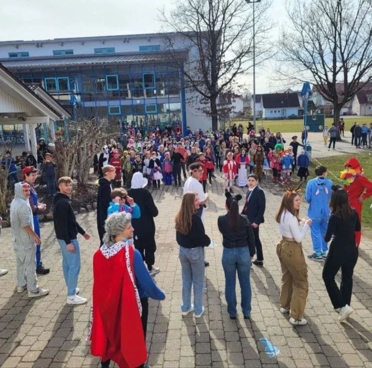 Am schmotzig narrischen Dunschdig hieß es endlich wieder: "Ramseweible - grantigs Weible!" Mit kreativen Klassenmottos, SMV-Popcornverkauf, fetziger Musik und tollstem Wetter sind wir in die Fasnetsfeier gestartet! Während im letzten Jahr die Gummibärchenschleuder bei Groß und Klein auf Begeisterung stieß (selbst Fehlschüsse konnten die Feierlaune nicht trüben), wurden die Lehrkräfte dieses Jahr schnurstracks in das Narrengehege verbannt, das vom anschließenden Narrengericht aufgelöst wurde.